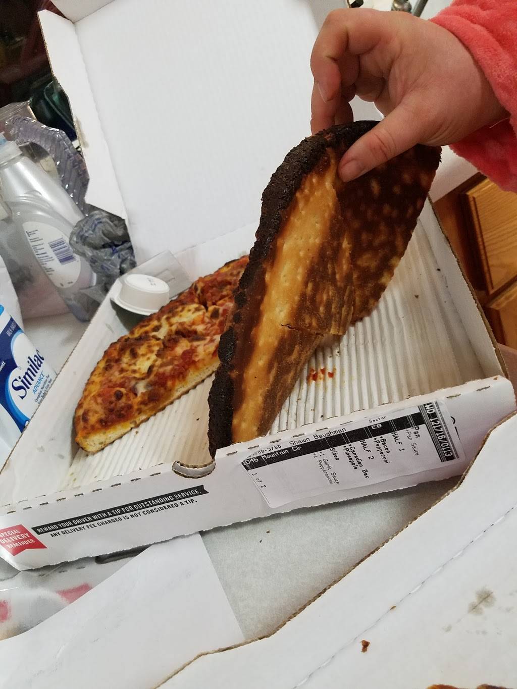 Ordered delivery, expected 2 hours but was prepared to wait because of the weather. About 30 minutes later, driver showed up with our hot pizzas!
