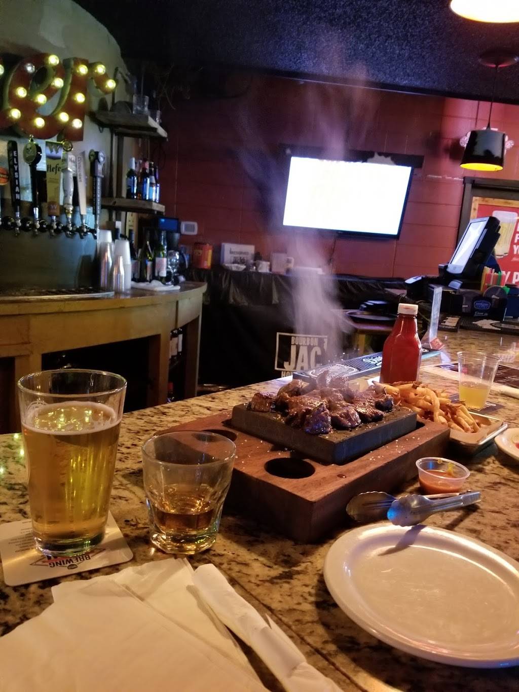 Bourbon Jack's has a pretty chill atmosphere. In the front they have a couple arcade games and some TV's that usually play sports. They have 4 dart boards and 2 pool tables. During their karaoke nights they usually have a full crowd and everyone has a good time. The one thing I really want to touch on is their food. The burgers are some of the best bar burgers I've ever had. I personally haven't had their dry aged flat ironed steaks but I was told they are good as well. I would recommend this bar for anyone looking for a nice Friday night.