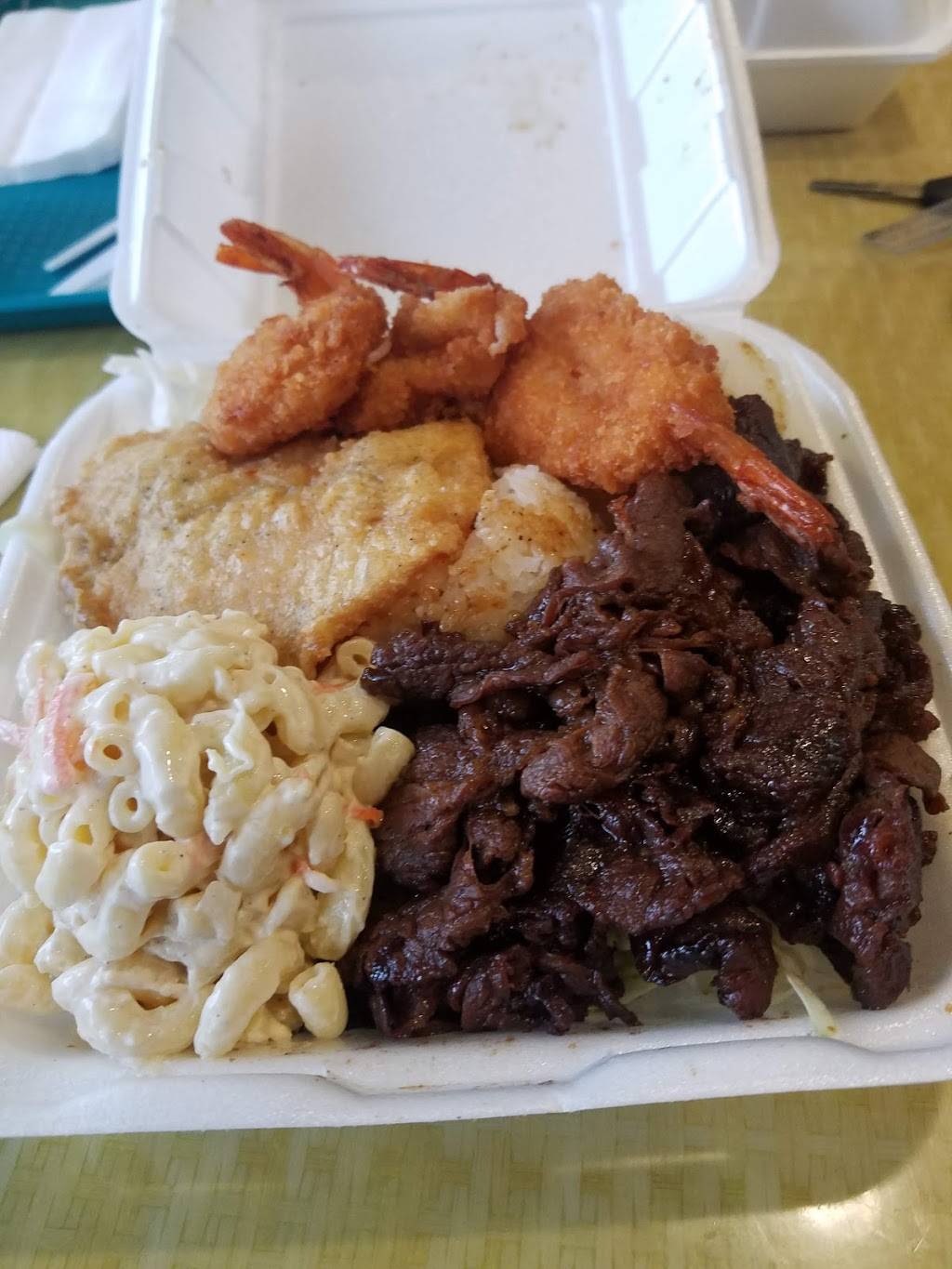 Just the second time I have been here. The food is good and pretty generous portions, a bit pricey. The thing I noticed and bothered me was the fact that every meal is served in a styrofoam to go container along with plastic utensils for every meal, to go or to stay. That's a lot of waste times 6 locations. I would hope that the islanders might have a better outlook on the environment than to be dumping all this plastic. Certainly there is a biodegradable answer to this. I give them 3 stars.