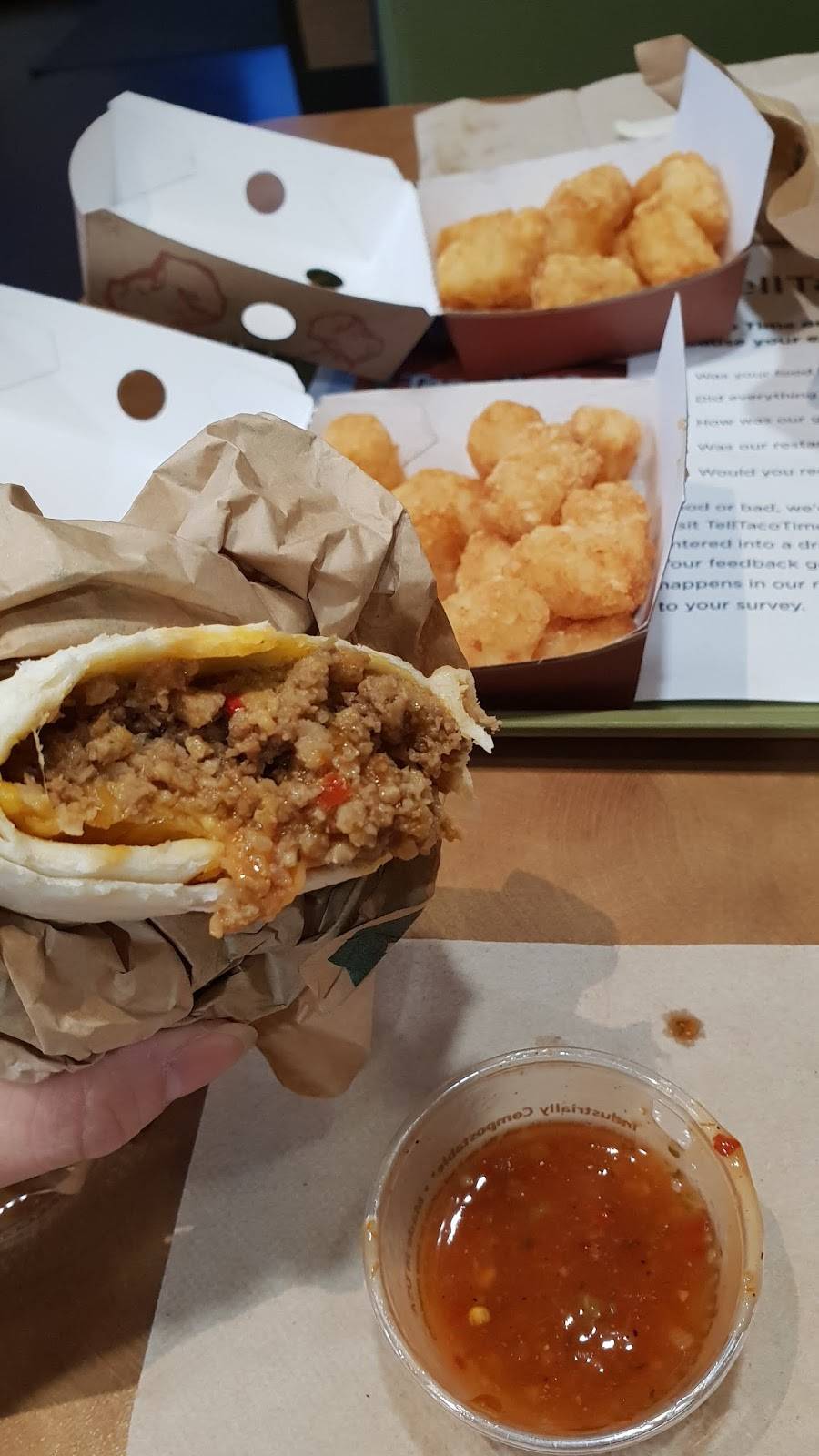 Fresh ingredients. Mexi fries are a big plus. Crisp beef burrito always delicious. Gotta love anytime is taco time.