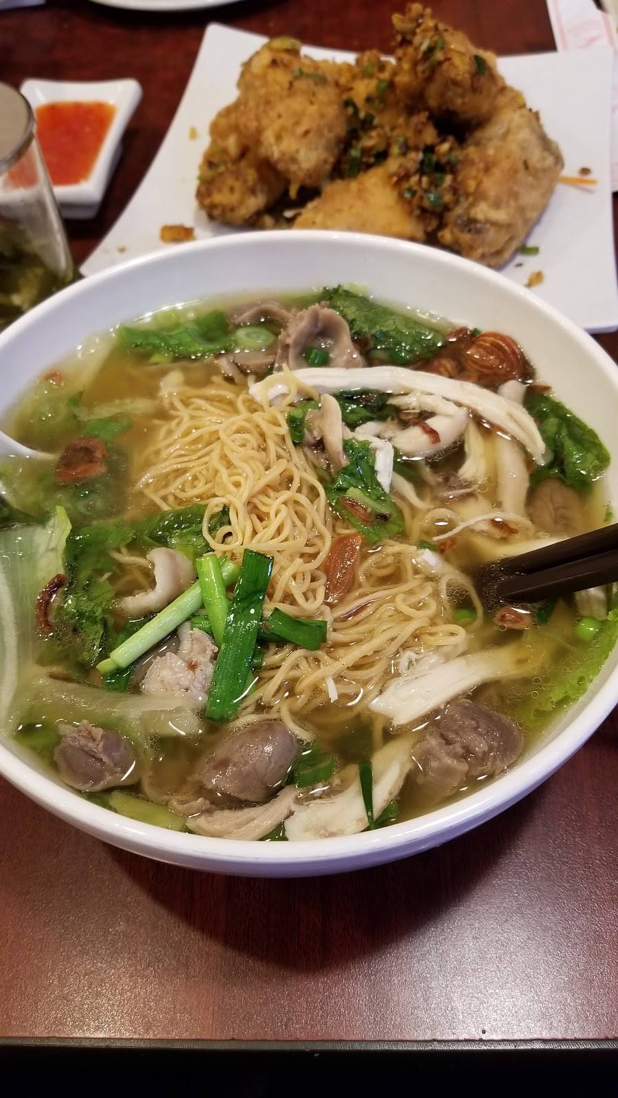 One of my favorite noodle joints. They have excellent soup that is a mixture of Vietnamese and Chinese flavors. It can be had with either pho noodles or egg noodles. They also have excellent chow mein and fried rice. I always go for the Chinese doughnut to soak up some broth in my soup. The garlic chicken wings are awesome. Crunchy and delicious.