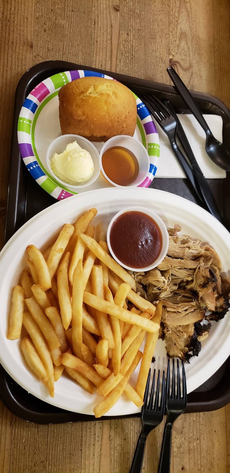The food was fresh. But the menu said "pulled pork", and I received a big chuck piece of pork on a bun with BBQ sauce. They gave me 4 chips. I counted. And the cup of potatoes was nice and big. Overall it was okay. But in my mind I saw pulled pork, not a chunk. But maybe BBQ is different here. Idk if you're hungry, it isn't bad. I still enjoyed it.