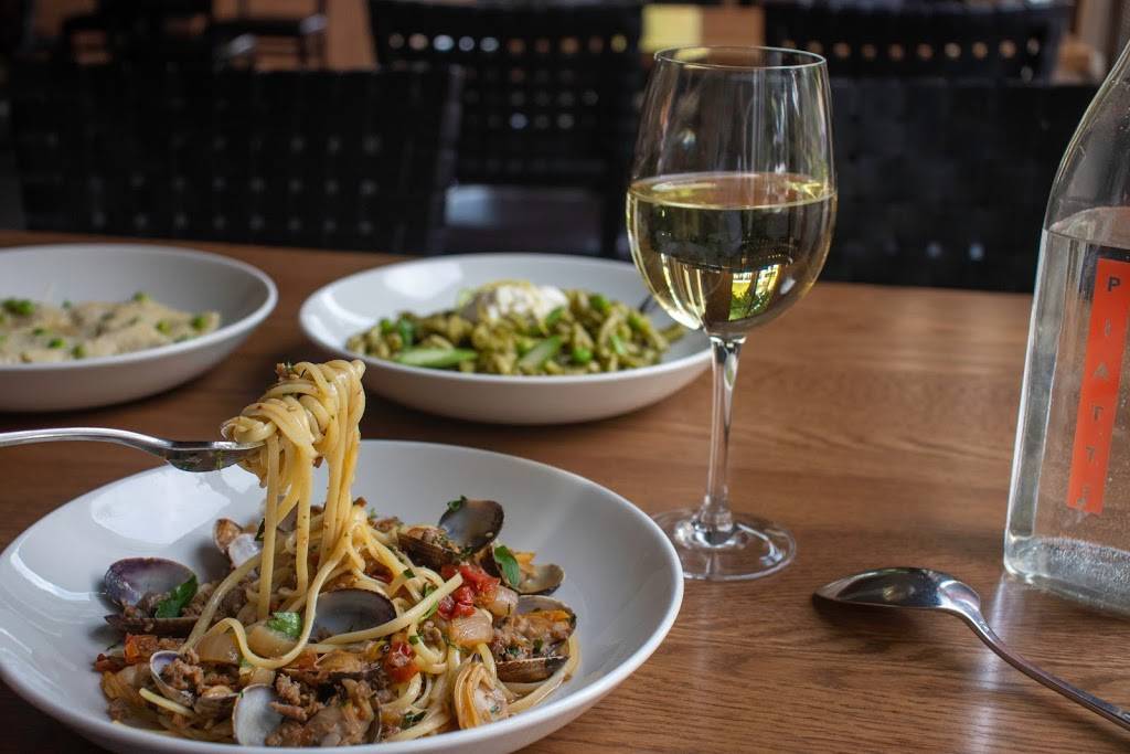 This place is decent, and in a great location. This could have been a fluke, but I got the rabbit papardelle, and it was oddly bland. The sauce was very thin, with little flavor. Even the photo makes it look bad (seriously, look at the attached photo of the pasta dish and tell me what you think.) The bread and dipping sauce are amazing, and you can snag a bottle of it for the road too. Cesar salads come with anchovies which I think is a nice touch.