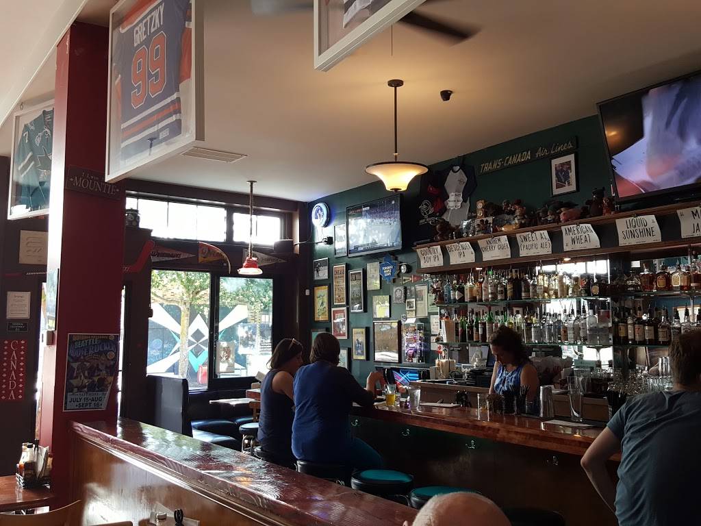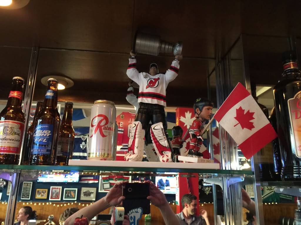This is a pretty good place. You can not mistake it for anything other than a hockey bar. And that is a great thing. There is lots of seating and TV all around the bar. So no matter where you sit you can watch the hockey game. They have a full bar and a good selection of beer on tap and bottles and cans. If you are going to eat there you have to try the poutine. You can have it several different ways. I had. Burger and hand cut fries and they we're good. A very solid burger. My wife had fish and chips and they we're very good. Being in Greenwood park is on the street or there is pay parking behind the building. The only drawback to this visit was there were several flies swarming in the sun. Other than that I think this is a good sports bar and a lot of fun for hockey night.