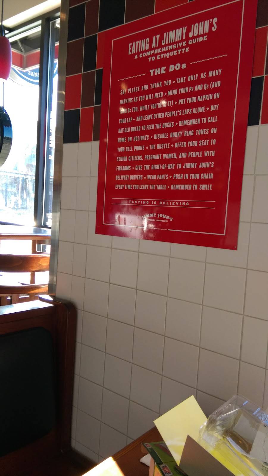 The number 16 sandwich was really good. Good atmosphere and the customer service was also very nice. I would recommend Jimmy johns to everyone!