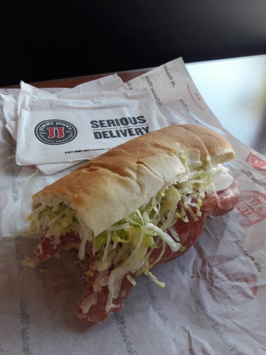 Now that we've moved, our delivery options have become severely limited in this area. Mostly pizza places and a couple we still need to try. My girlfriend decided to order from here one night when we were just too tired to cook. I was a bit hesitant but ordered the gargantuan sandwich with sprouts and peppers. We were sitting on the couch joking about the commercials where the deliveries are insanely fast, and all of the sudden there was a knock at our door and it was Jimmy John's!
