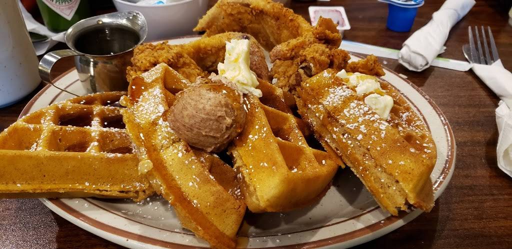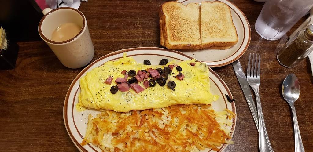 Warm and inviting, a cozy place to gather, kind and friendly waitstaff and prices between $8.99 to $12.00 being the average. A fun touch is the large-scale train that runs around the top of the booths around the whole restaurant, as well as a fireplace, and there were no drafts we noticed. Even when the place was so full, we didn't have any trouble hearing each other talk. Hard to imagine the size of their pancake plates--more than I could handle, and along with the pancakes were 2 eggs and your choice of sausage or bacon. The two of us spent about $32 before tip. We'll be back again.