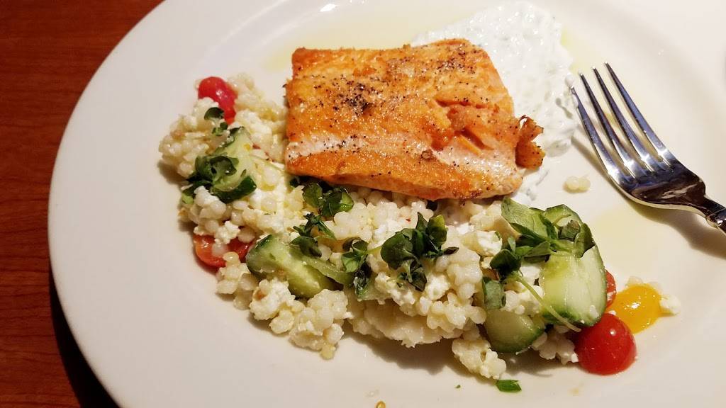 Ordered Salmon with Mediterranean coos coos salad tzatziki dressing. Absolutely delicious! Salmon was cooked perfectly. I was not surprised, best food and great service.