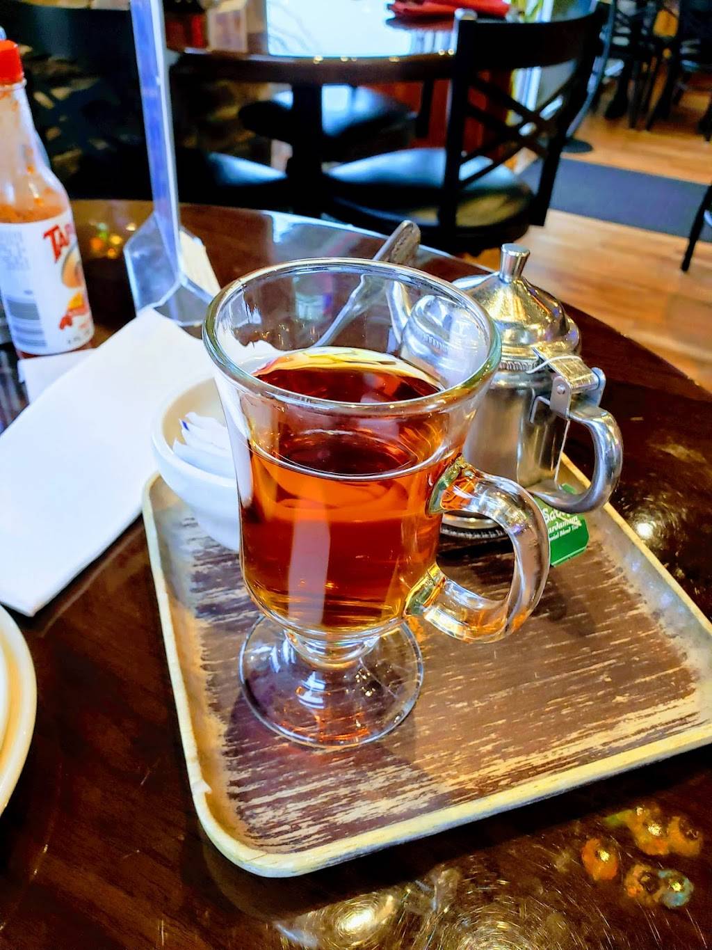 Food was amazing!! The hummus and pita was maybe some of the best I've ever had. Our waitress was very attentive and friendly. It is a little loud inside, and sound carries but the atmosphere is bright and clean.