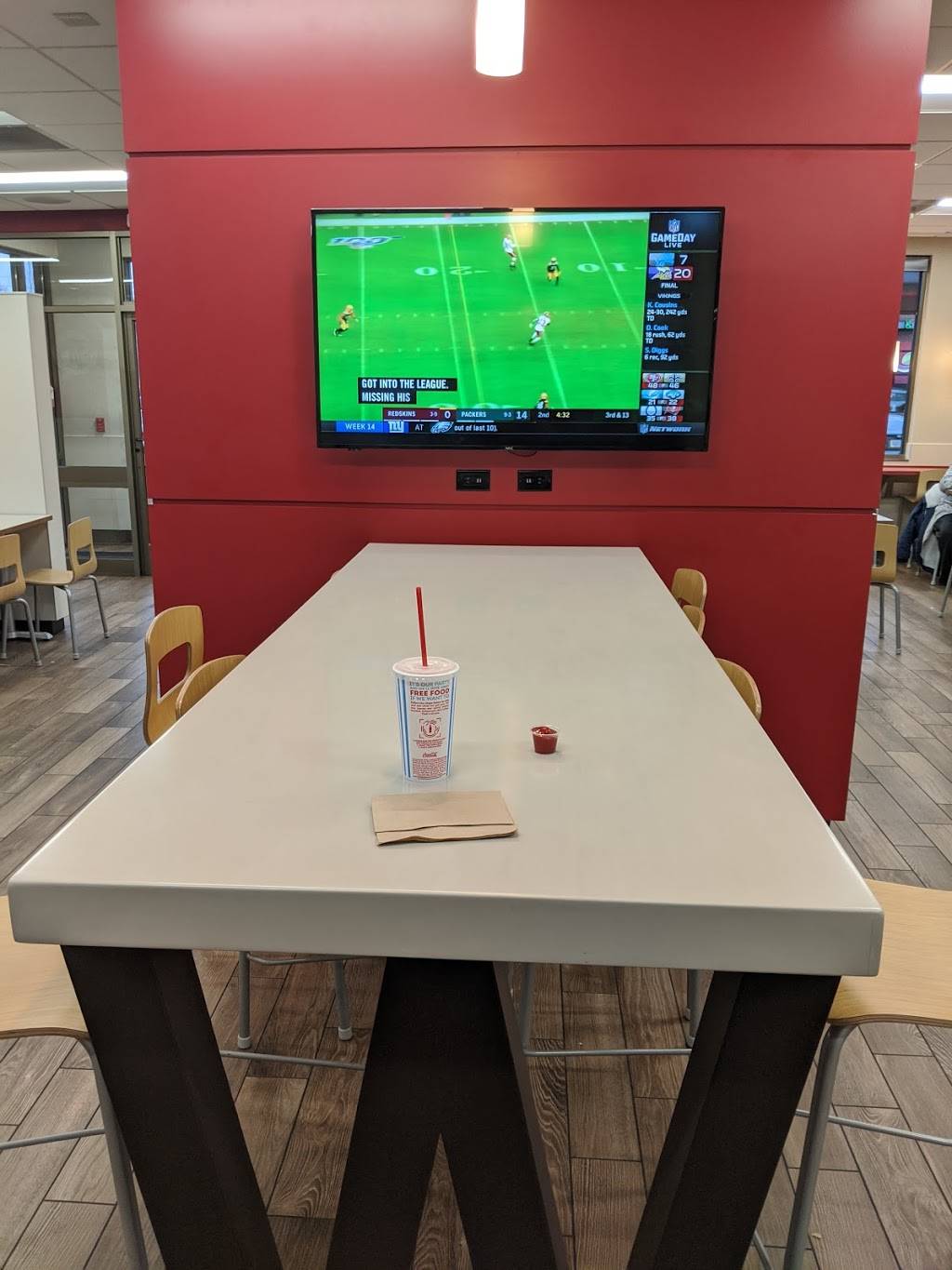 Standard Wendy's, but remodeled six months ago. Interesting layout with big screen always tuned to NFL Network. An improvement over the old decor so I added a point for that. Trash bins have weirdly small openings though.