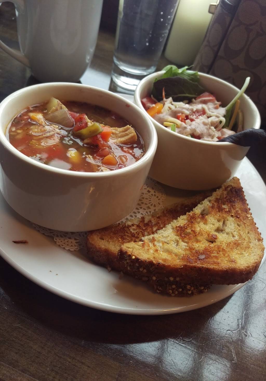 Last time, we sat down for brunch. I had the mushroom crepe and my partner had a breakfast burrito. Both were very delicious. I would actually consider ordering the mushroom crepe again. We both also had beverages.