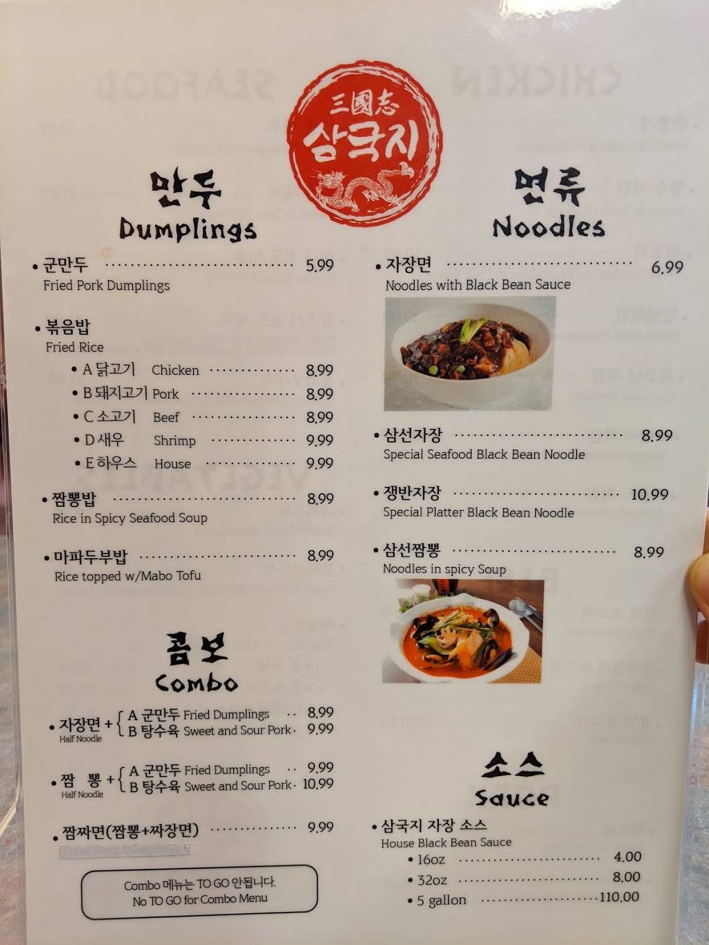 Great food and great value! Black bean noodles are the best deal, and they taste great! Spicy seafood noodle soup is good as well, great portion and good spice to it as well. Aside from noodles, I would also get the Korean sweet and sour pork (ttangseeyuk) as a good pairing. Will definitely be a return customer here.