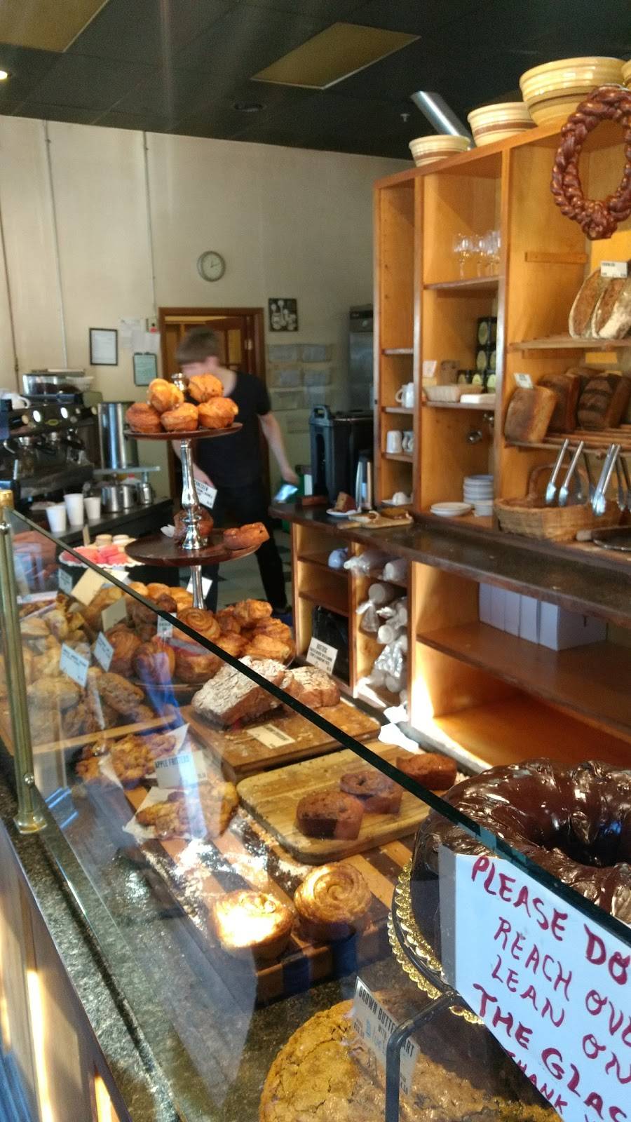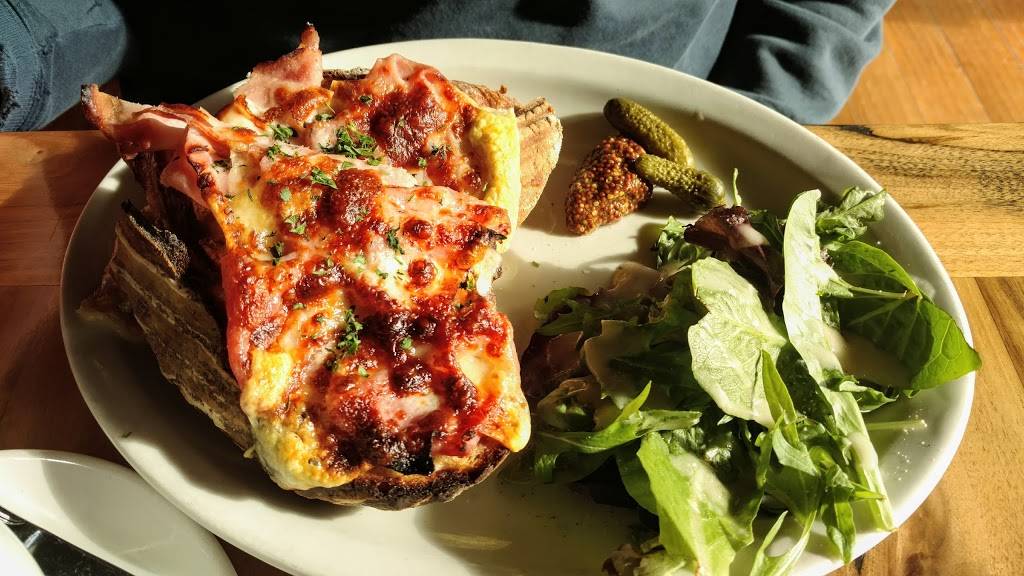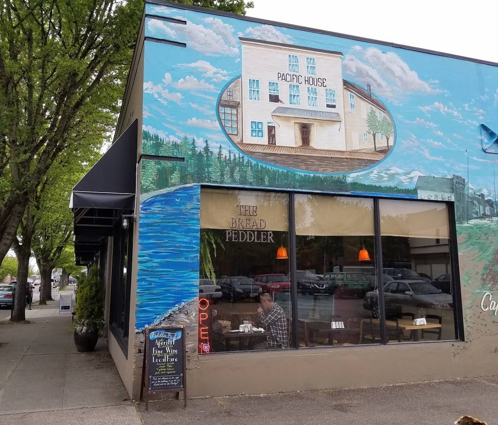 The bread peddler has consistently delicious food. This is a traditional French patisserie as we as a bistro for breakfast and lunch. It is affordable and of gourmet quality. There are two soup choices and one is often a vegetarian option. , and baguette sandwiches are ready to go from the case. There sunshine coming through the windows on a sunny day, staff are friendly and attentive, and the place is often bustling with a diversity of people who come there to sit and eat delicious food and sip a nice hot drink. Fresh baked bread is available for take-out, as are a multitude of desserts. Wine is available.