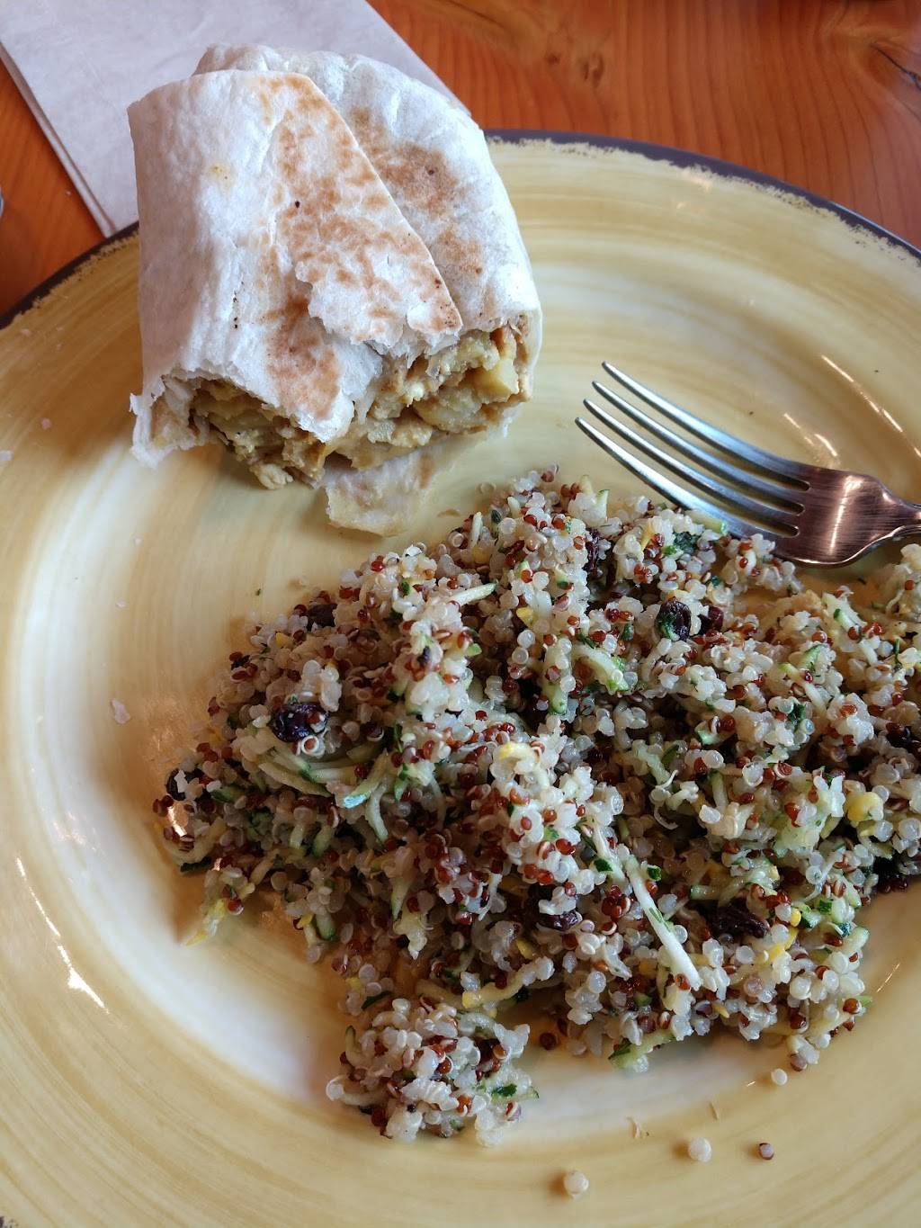 I love bringing avid-meat-eating friends to vegan and vegetarian restaurants; it's such a great gauge of how good the food is when a carnivore loves it! That happened here. :~] We also enjoyed the layout of the Cafe, with its views of the neighborhood. Parking was easy, too - and free.