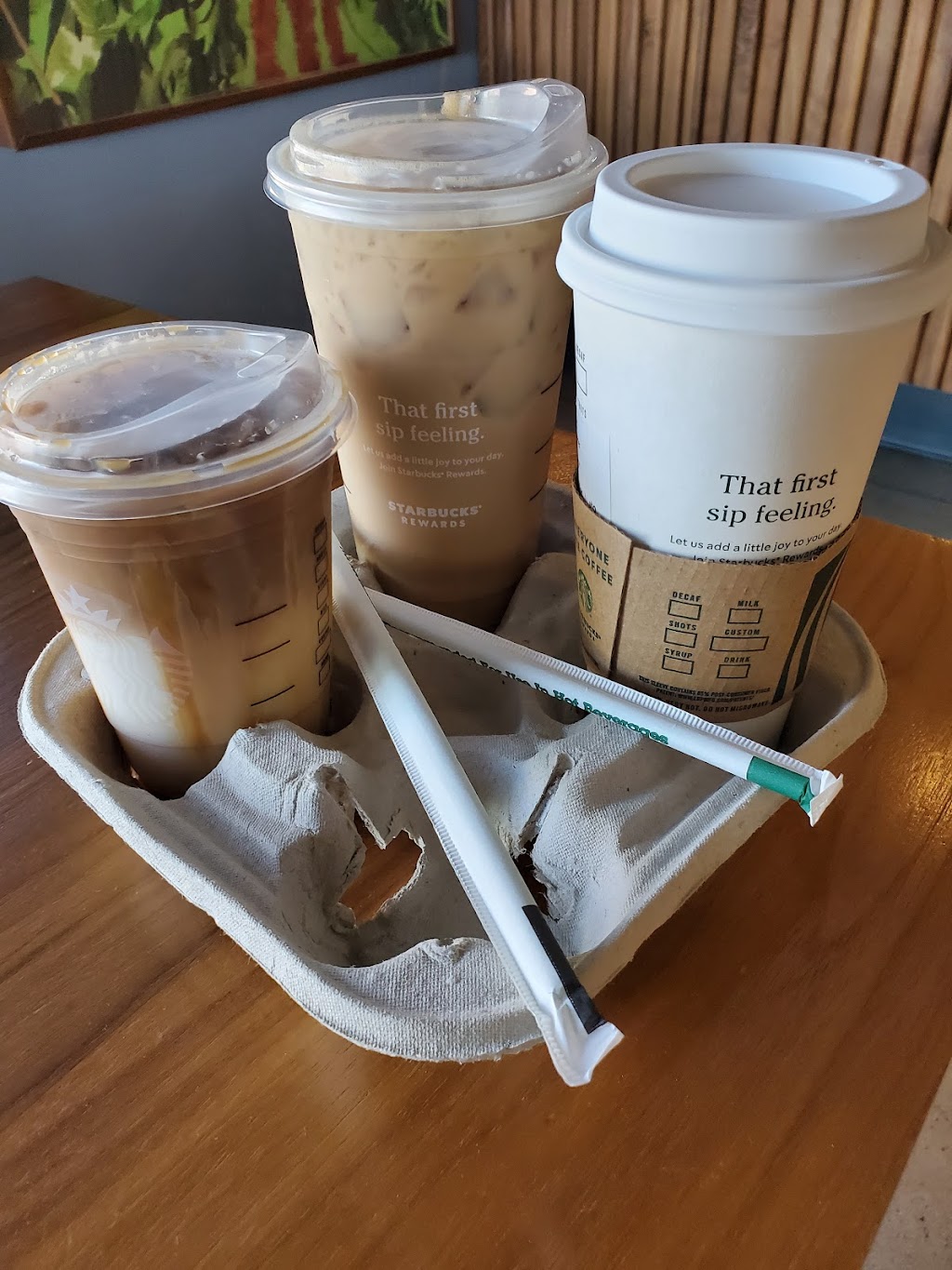 Fast and accurate drive thru service. Good coffee, average Starbucks prices. Friendly staff.