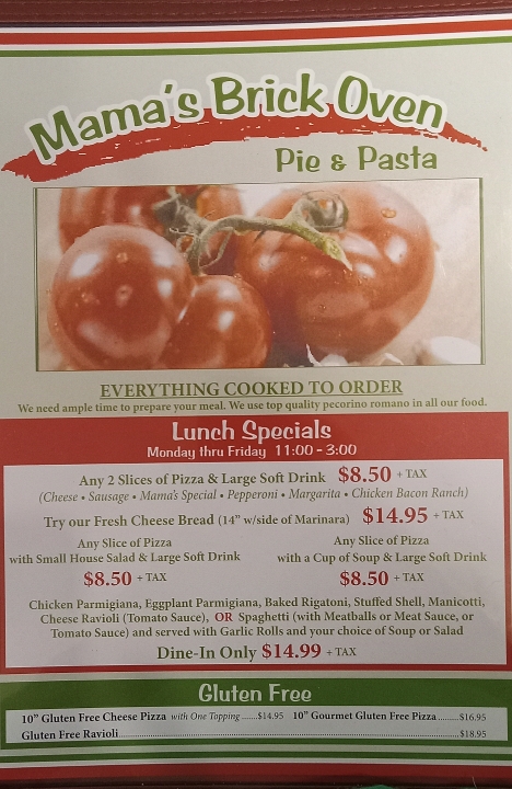 You know I really enjoyed the food. Their calamari is delicious. And you know the prices aren't bad. It was nice finally sitting down to dinner table with the whole family. Thank you Mamma's Brick Oven Pizza.