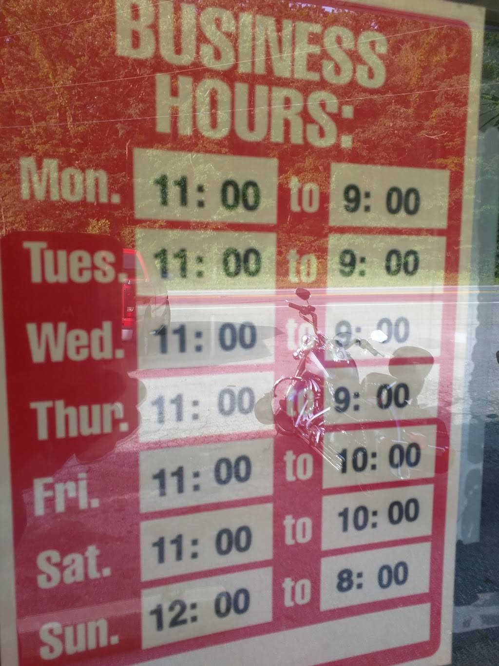 | Monday: | 11:00 AM – 9:00 PM |