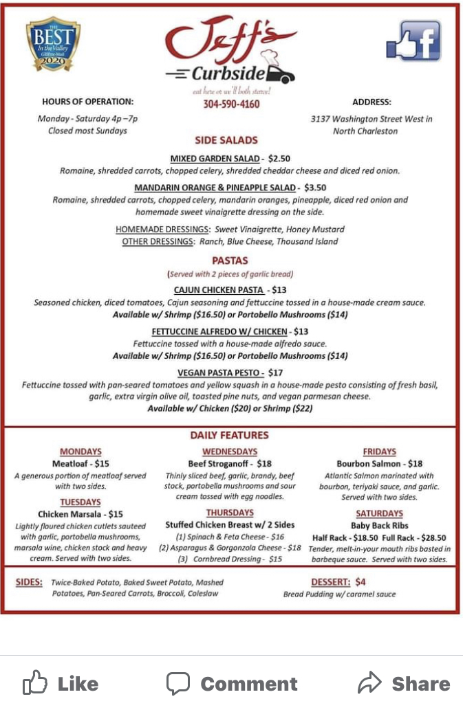 You can review this Business and help others by leaving a comment. If you want to share your thoughts about Jeff’s Curbside, use the form below and your opinion, advice or comment will appear in this space.