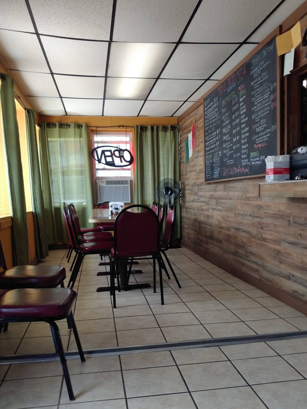 AUTHENTIC Italian pizza due to the Freshly Made & Very FLAVORFUL Sauce! Tastes great though I prefer a Crispier Crust personally. That was the only drawback for me. Very Friendly staff!