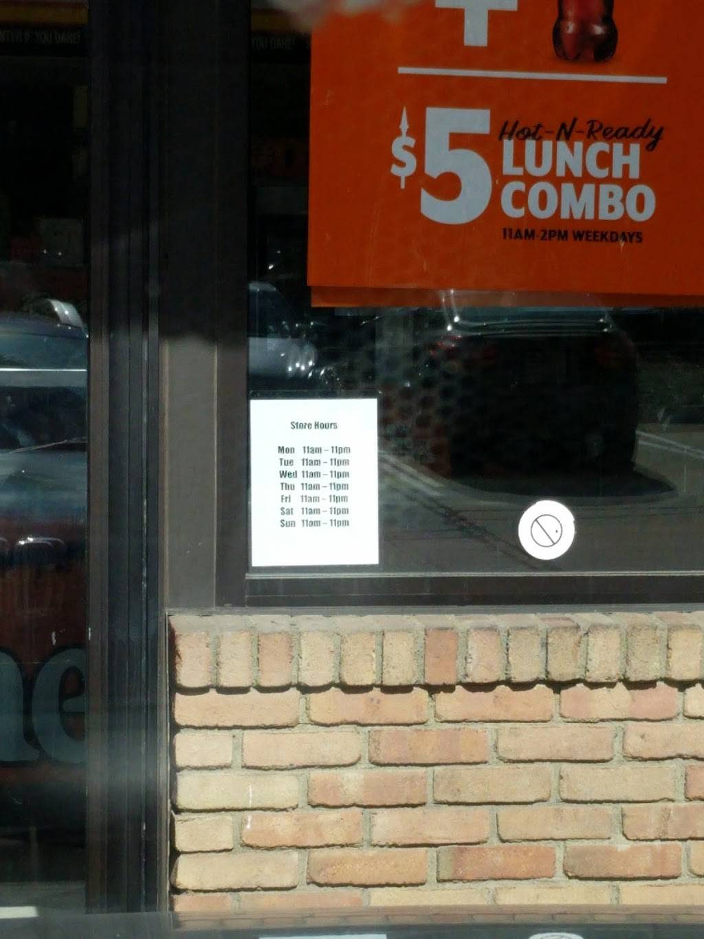 Arrived and was greeted right away however the 5 dollar hit and ready not so ready no pizzas were ready to be taken so I wait for them to cook it myself and another customer were told they were to busy to have them ready. However when I walked in right after the other customer the Madeline employee was waiting at the counter to see what we ordered so he could make it. I was told they had 5 pizzas ready to go in the oven all cheesed just needed toppings. If your going to say hot and ready please make sure they are ready. Wait was about 8-10 minutes total