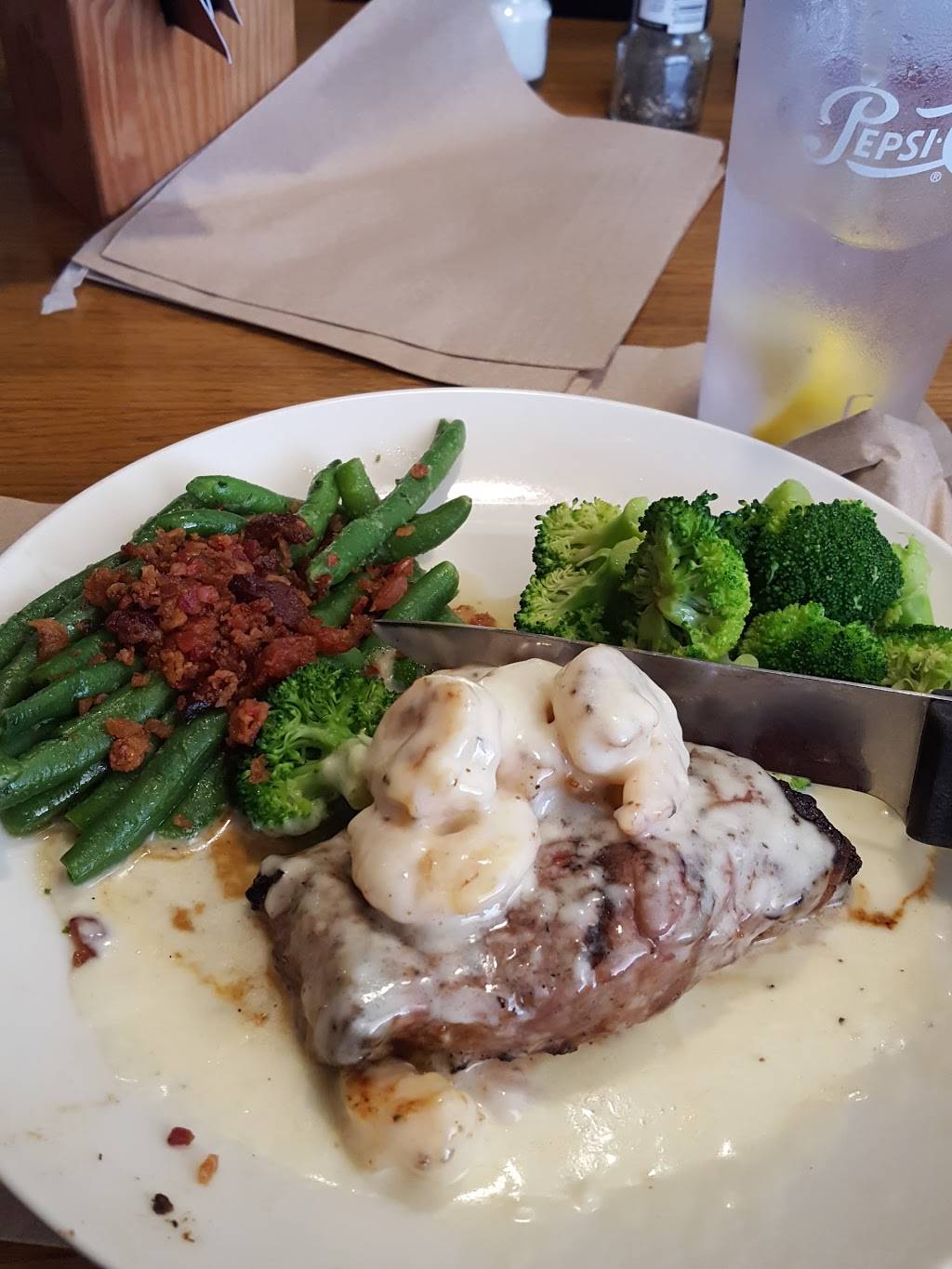 Had a wonderful server, very polite and attentive. Hailey, I believe was her name and she did wonderfully. The burger was cooked to perfection, and was fresh. My husband's steak was juicy and cooked just perfect medium. Props to the cook! Havent really had too many bad experiences at our Applebees.