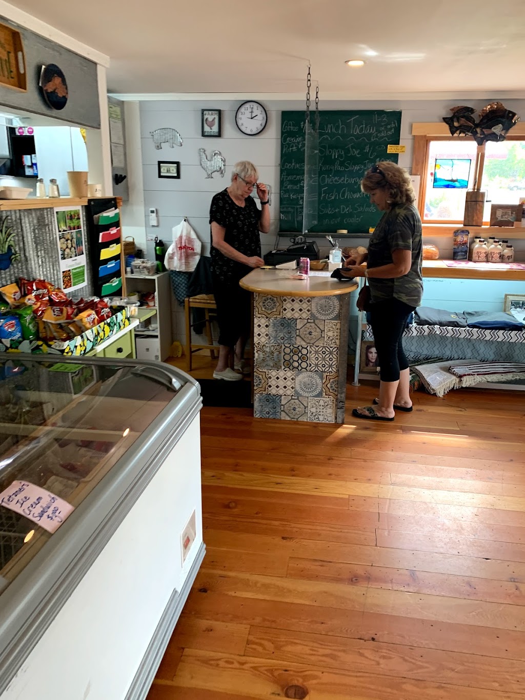 Wonderful establishment to stop in for a delicious quick meal. We had the Korean BBQ Sloppy Joe with slaw and crushed peanuts. It was served open-faced on a homemade bun. It was amazing. My husband had the fish chowder and devoured it. We finished off with a piece of special cake topped with cream cheese frosting. I also purchased a loaf of bread to take home. All sorts of salads, treats and meats for sale. It is apparent that everything is made with love.