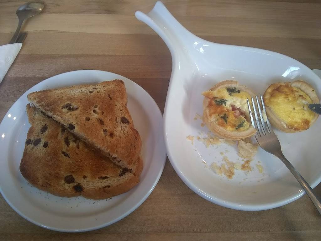 We had the opportunity to meet the lovely owner/talented chef! When we arrived there were only a few tables of people present. The entire restaurant completely filled up during our stay. Between the sole waitress and the owner, we were dining relatively quickly for such a busy morning. The food would be well worth the wait anyway. My 3 mini quiches were made to order! The crust was flaky and delicious, the egg was the perfect balance of creamy and puffy. The veggie and cheese ingredients melded very well. The cinnamon raisin toast was delicious. My husband had scrambled eggs, toast, hash browns, and sausage. He enjoyed everything. We took a gorgeous big blueberry muffins and everything bagel home for later. These were delicious as well. (When do you find homemade bagels at a diner???)