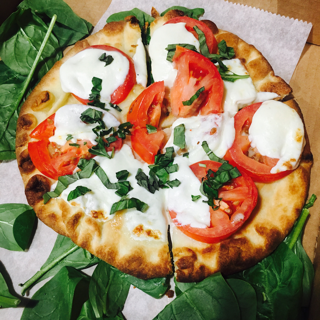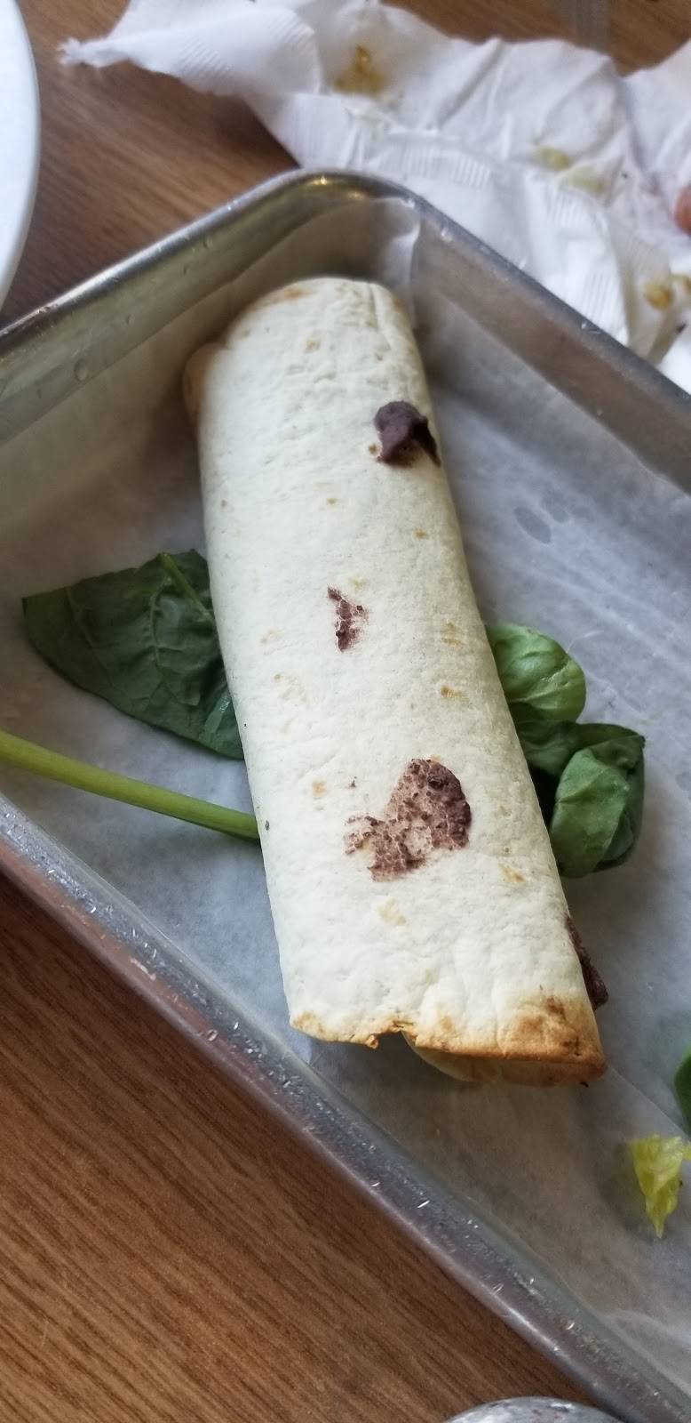 I ordered the vegan Mediterranean black bean burger with spinach and balsamic glaze and kalamata olives with the gf flatbread for a bun . The burger was very delicious and had a lot of flavor , the flatbread as a bun was also really yummy . The waitresses where also very friendly and helped explain what was vegan on the menu . Cute building too . I only wish they had vegan cheese .