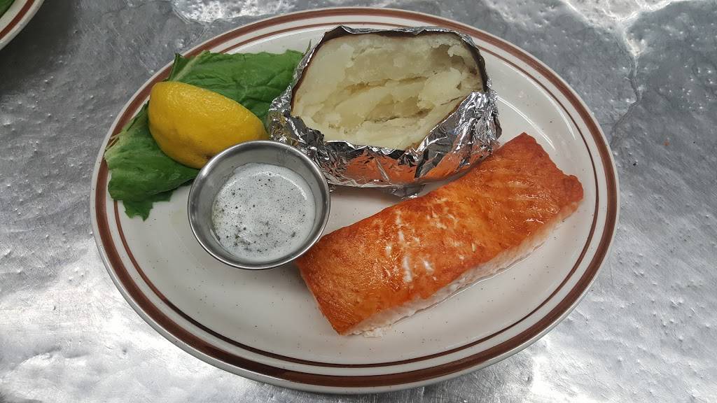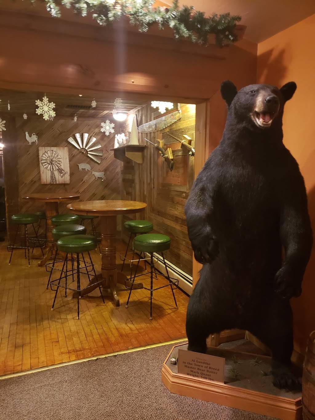 Full bar. Separate large dining room. Great steaks and chicken cordon bleu were enjoyed that night.