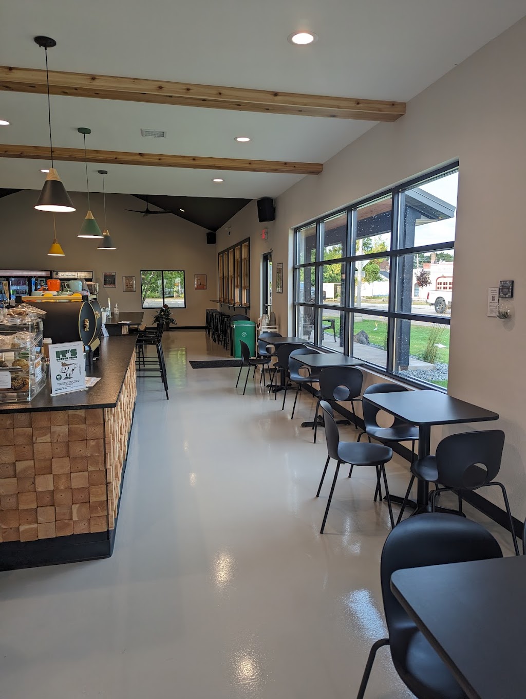 Wonderful location to enjoy a coffee, Bloody Mary, Packaged Ciders, and Craft Beers. A beautiful new building and warm welcoming by Pam! We enjoyed coffees, a yummy Toasted Jalapeño Grilled Cheese and an epic game of Jenga! We will definitely be back! A nice addition to the downtown Minocqua scene.