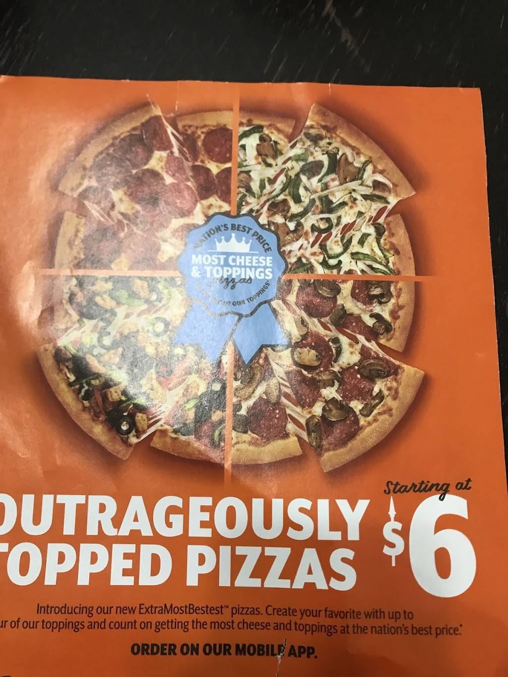 Good pizza for the price. Cranky overworked staff, and for lack of a better word, "ghetto" as hell. Not the staff, not the customers or even location, just the overall atmosphere. Cars filling the fire lane, all handicapped parking occupied by non-handicapped people in pajamas, curlers, shower caps... The front of the store looked like a red-light district mixed with a crack house. Pizza was good tho