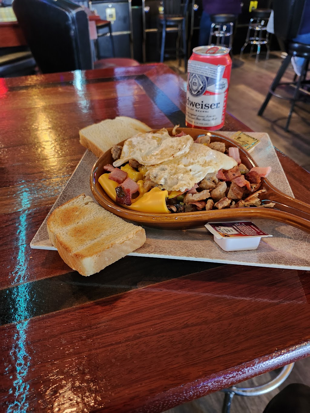 This was my first time here and my husband's second time. Our waitress (Dee) was absolutely fantastic! There was several people at the bar and several tables eating and she was all by herself (except for i saw someone help bring out food) and she took care of all of us so quickly and with a smile. From bartending to waitresses to bussing tables and running food she was doing it all! My husband and I ordered the brisket, which was delicious, the kids got chicken n fries which they raved about and the pub chips and beans were also fantastic! The bistro sauce they have there goes so well with the pub chips!