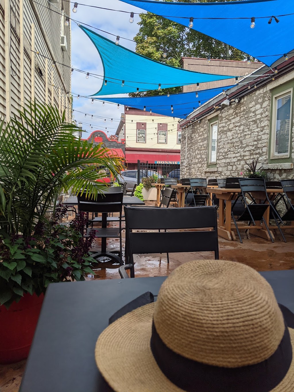 Spacious both indoors and out. The patio is beautiful. Bathroom was pretty clean. Saturday was very busy even with several baristas working so there was a wait. Very good selection of drinks and food. Always a fan of Anodyne Coffee!