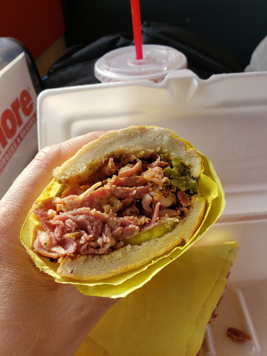 Pretty good for fast food. Prices were reasonable. Hamburger patty was thin but I got the barbecue bacon burger and was very tasty. It had a spicy kick to it which I really like. Fries were good as well. My son's corn dog was a bit greasy. I would recommend this over the more common name brand, fast food restaurants.