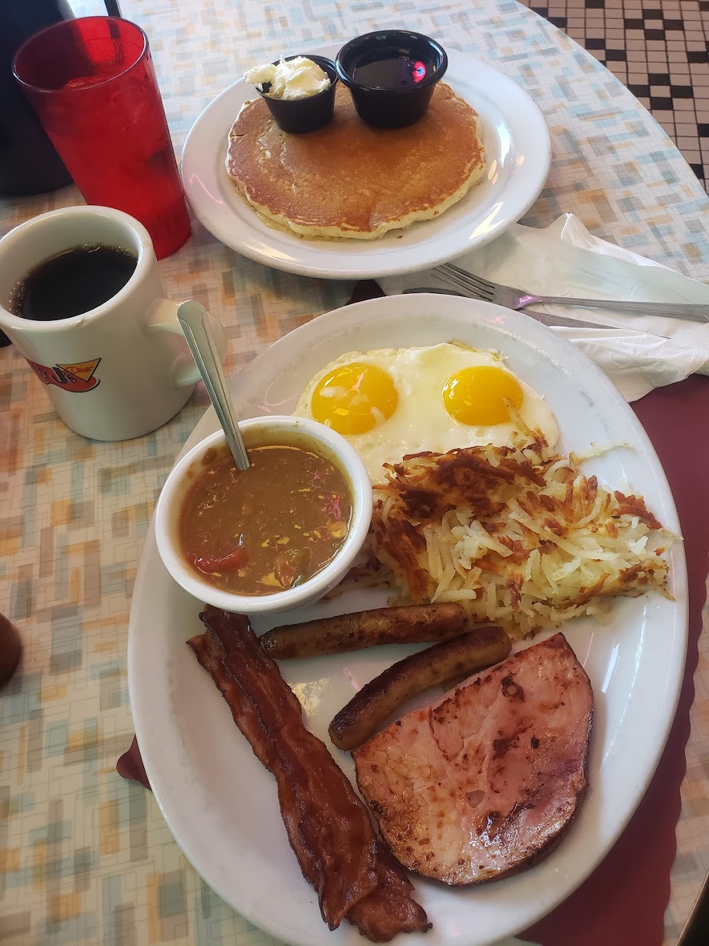 I had their liver and onions and the liver was cooked to perfection, the only complaint was that there wasn't enough onions. The bacon was a nice touch.